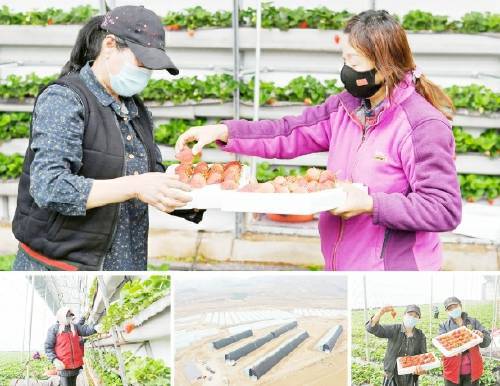 图为后西地村村民在棚间采摘反季优质草莓。
